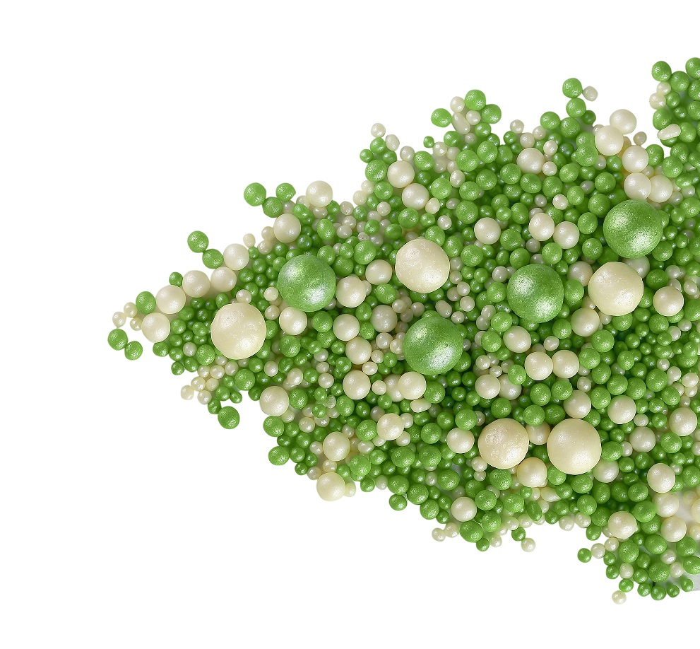 111 Драже зерн. взорв.зерна риса в цв.конд.глазури (Жемчуг Серебро,Зелен) Микс, 1.5кг